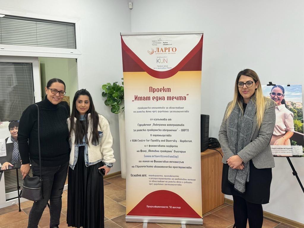 Проектът „Имам една мечта се изпълнява с финансова подкрепа, предоставена от Исландия, Лихтенщайн и Норвегия по линия на Финансовия механизъм на ЕИП. Основната цел на проект „Имам една мечта“ е да апробира, приложи и разпространи иновативни методи за овластяване на ромски жени и девойки чрез директно застъпничество.